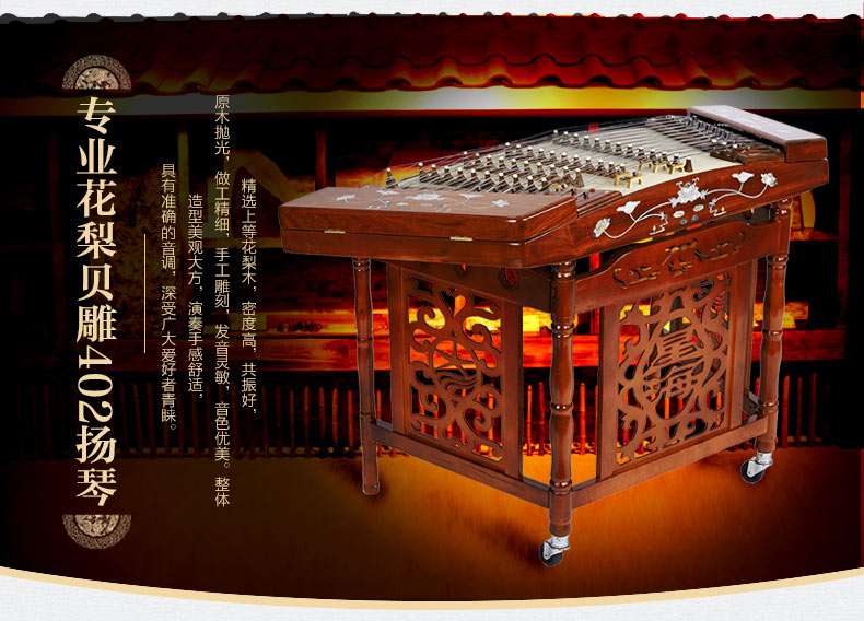 星海專業(yè)花梨木雕龍402揚(yáng)琴